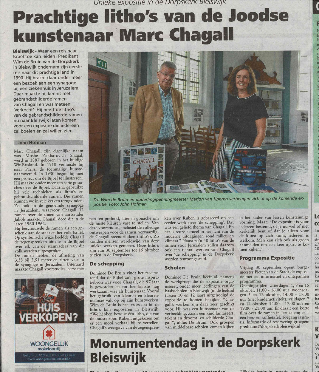 De Stichting exposeert werken uit de WUYT collectie. Een prachtige verzameling litho’s van de kunstenaar Marc Chagall staat op thema ter beschikking.
